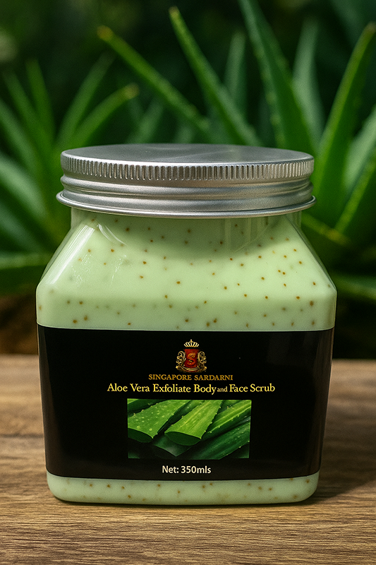 Soothe and renew your skin with our Aloe Vera Exfoliate Body and Face Scrub. This gentle yet effective formula combines natural aloe vera, fine exfoliating particles, and nourishing oils to remove dead skin cells, unclog pores, and reveal a soft, radiant glow. Infused with the calming and hydrating properties of aloe vera, it helps restore your skin’s natural balance while leaving it refreshed, smooth, and revitalized. Perfect for both the face and body, it’s a luxurious ritual for healthier-looking skin every day. Net:350g
