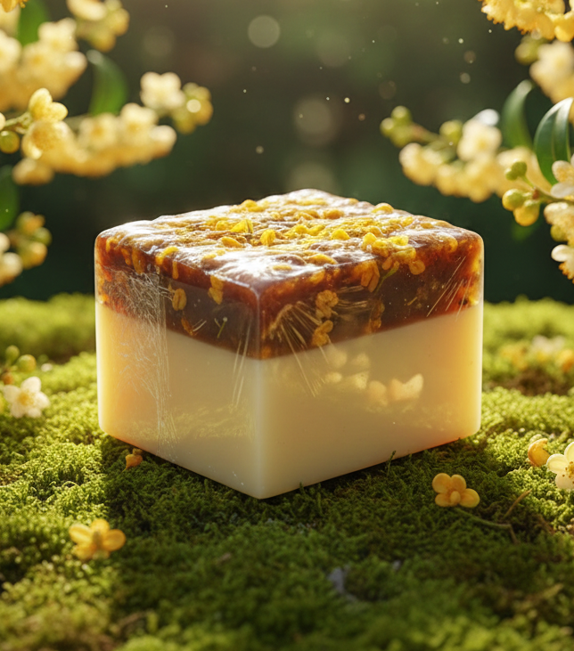 This handcrafted Osmanthus Natural Soap captures the delicate, sweet fragrance of osmanthus flowers in a gentle, nourishing cleanse. Made with natural botanical oils and osmanthus extract, it softens and hydrates the skin while providing a soothing touch for sensitive or dry areas. Its creamy lather helps maintain a smooth, balanced complexion, leaving skin feeling refreshed and lightly scented with the subtle, floral aroma of blooming osmanthus. Thoughtfully made in small batches, this artisanal soap offers a luxurious and calming addition to your daily self-care ritual. Net: 110g